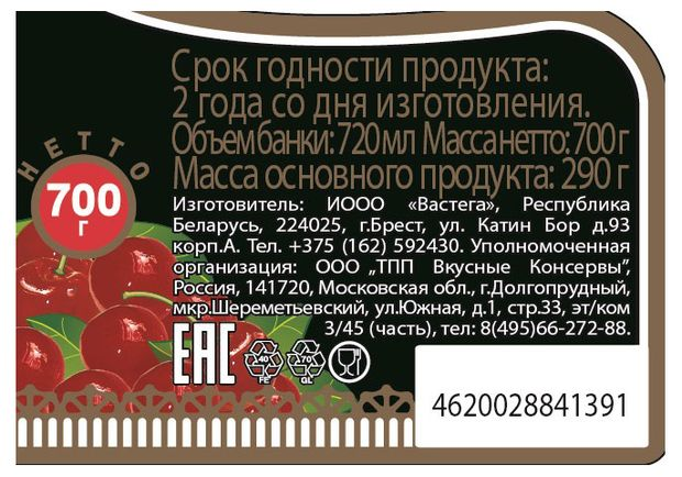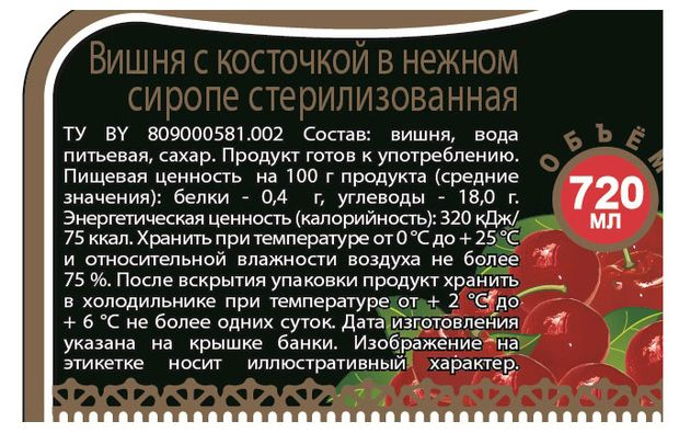 Вишня Скатерть-Самобранка в сладком сиропе, 720мл