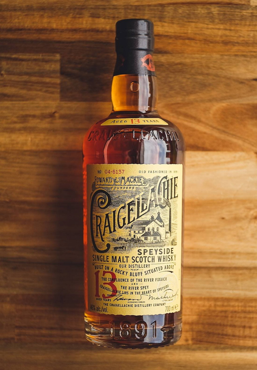 Craigellachie 13 Years Old — превосходный образец односолодового виски, один из четырех официальных розливов, выпущенных винокурней Крэйгелаки в 2014 году. Он сразу же стал "звездой" и завоевал популярность у потребителей благодаря смелому и надежному характеру и уникальному по сложности стилю. Богатый, сочный аромат виски, как и щедрый, элегантный вкус, наполнен фруктовыми тонами, пронизанными характерными нотками дыма и древесного угля. В целом, виски абсолютно подтверждает стилистику "Craigellachie", которая часто описывается как "мясистая" и "сочная". Винокурня Craigellachie была построена в 1891 году по заказу фирмы "Craigellachie Distillery" — группы винокуров и торговцев, во главе которой стоял Александр Эдвардс. После его отставки в 1916 году компанию возглавил Петер Макки из се��ьи создателей известнейшей марки "White Horse". Начиная с 1924 года винокурня долгое время принадлежала концерну Диаджео, а ее продукция использовалась для создания купажей, в основном виски "White Horse". В 1998 году Крэйгелаки купила группа Бакарди, а управляющей компанией завода стал John Dewar & Sons. Виски Крэйгелаки как и раньше идет на изготовление купажированных виски, сохранилось только 2% односолодового виски для розлива под собственным именем.