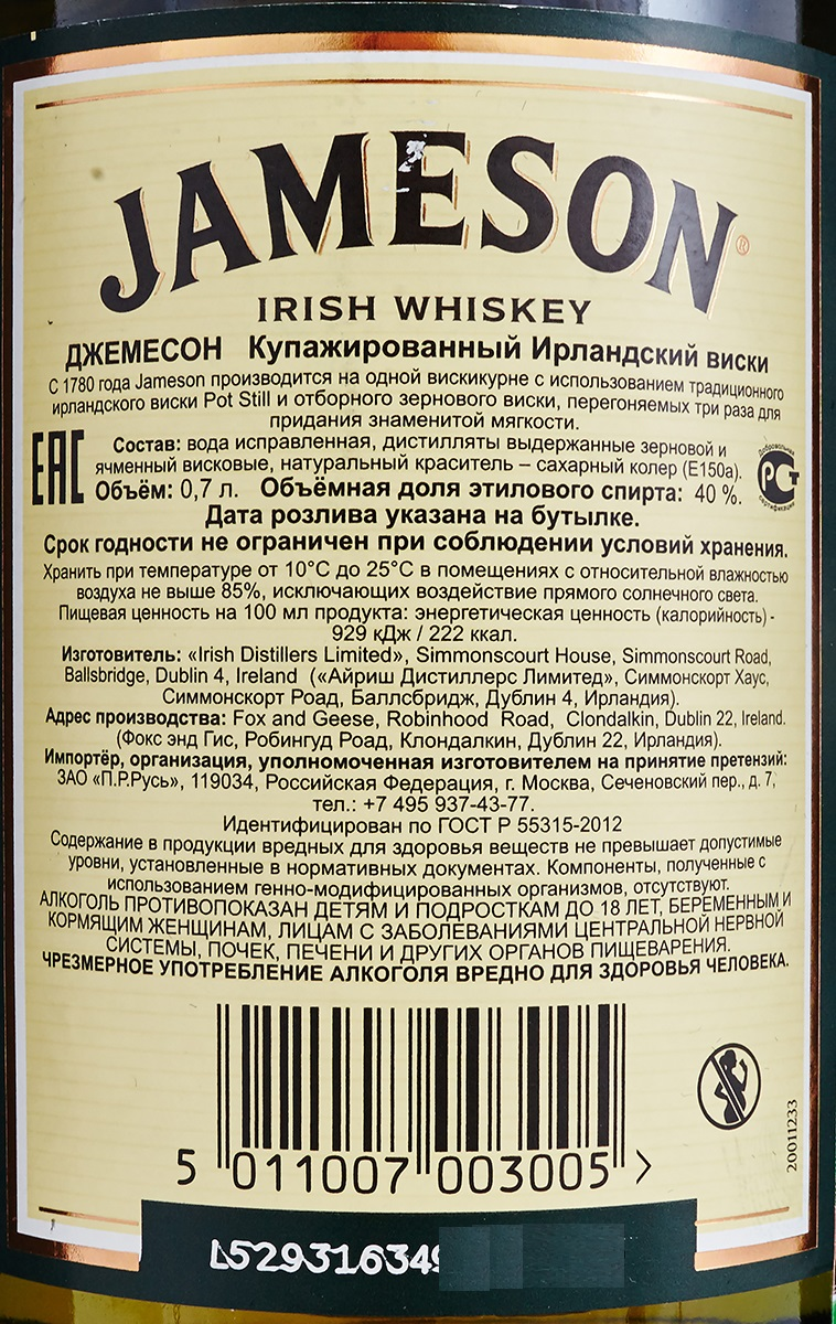- Страна-производитель Ирландия