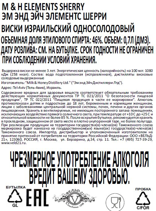 Виски M&H Classic Sherry в подарочной упаковке, 0.7л