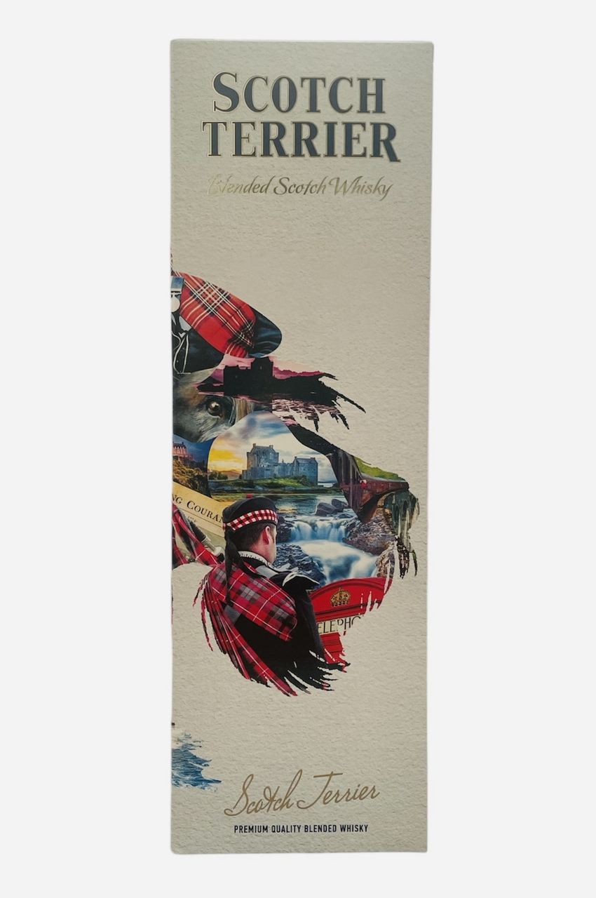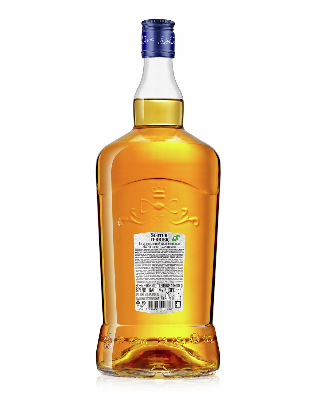 Выдержанные висковые дистилляты произведены: Scotland-United Kingdom (Соединённое Королевство Великобритании и Северной Ирландии) Scotch Terrier - мягкий и исключительно приятный на вкус виски. Прекрасно подходит для употребления в чистом виде, для приготовления коктейлей и сложных миксов. Идеально подобранное солодовые и зерновые дистилляты сохраняют медовые тона высокогорья Шотландии, прекрасно оттеняющие деликатные торфяные грани аромата. Виски, который производится компанией Альянс-1892 с февраля 2017 года. В создании напитка используются дистилляты одной из старейших шотландских винокурен - Loch Lomond Distillers. Дистилляты изготавливаются по классической технологии путем смешивания солодового виски с различными зерновыми сортами. В России купаж разбавляется специально подготовленной водой для понижения крепости до 40%, при необходимости добавляется карамельный колер, который придает будущему напитку привлекательный янтарный оттенок.