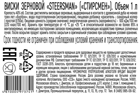Виски Steersman зерновой, 1л