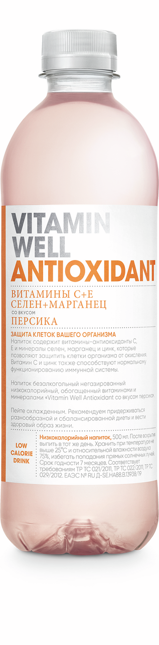 Напиток витаминизированный Vitamin Well Antioxidant со вкусом персика негазированный, 500мл