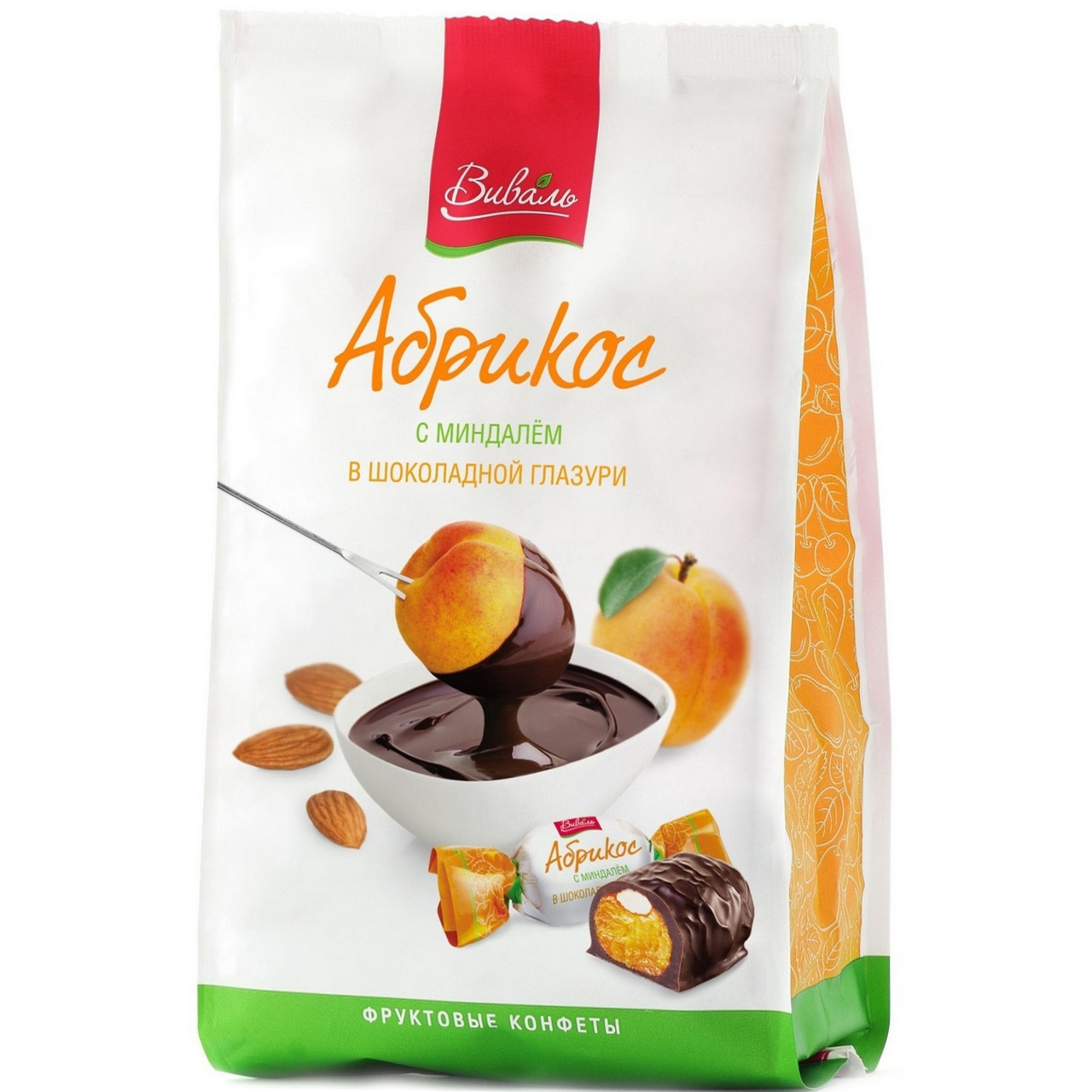 Конфеты Виваль абрикос с миндалем в шоколадной глазури, 240г