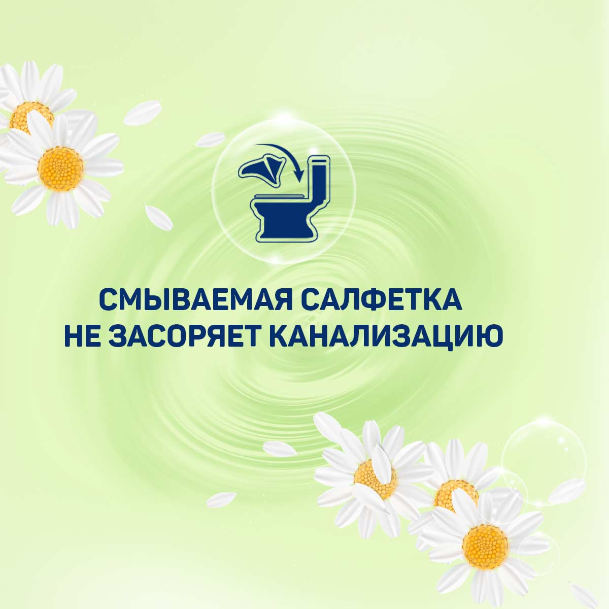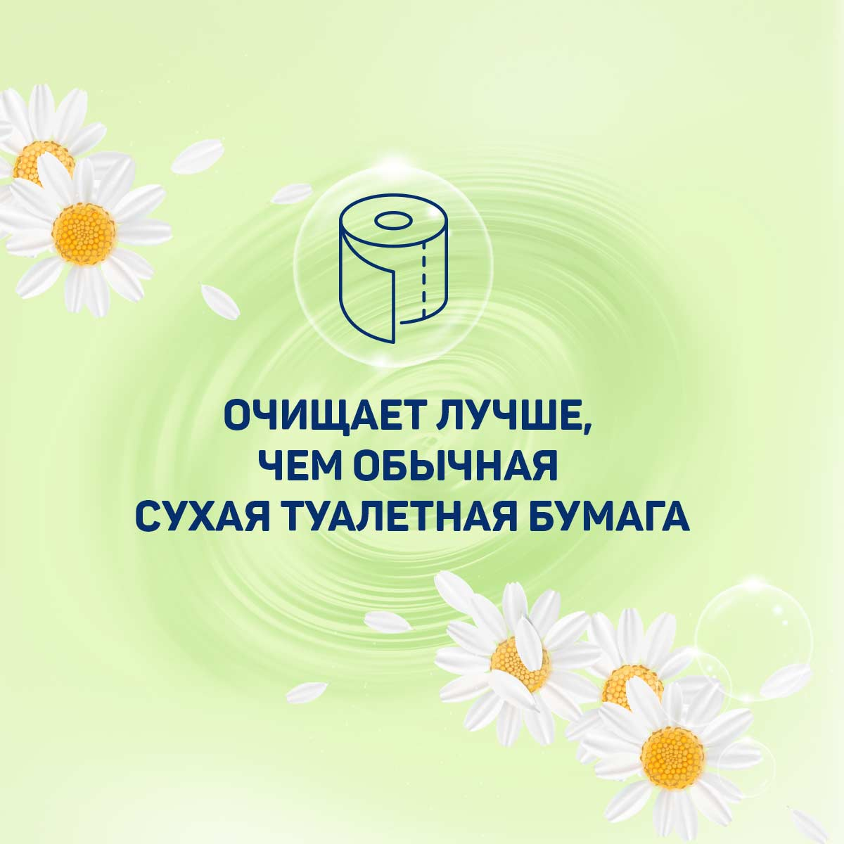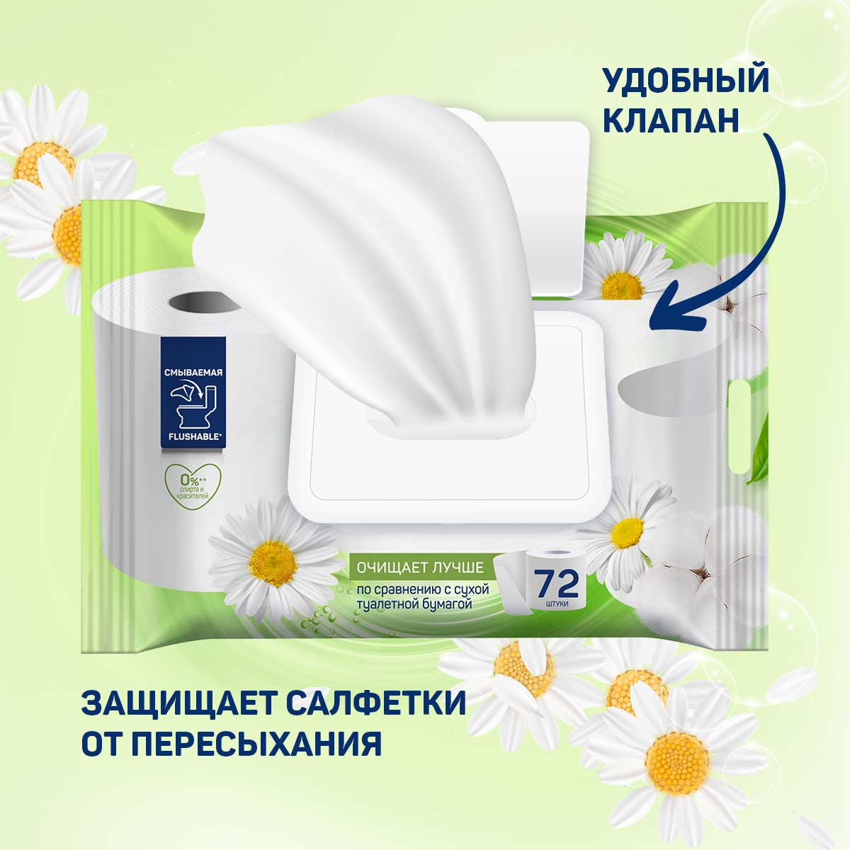 Влажная туалетная бумага Aura ромашка, 72 листа