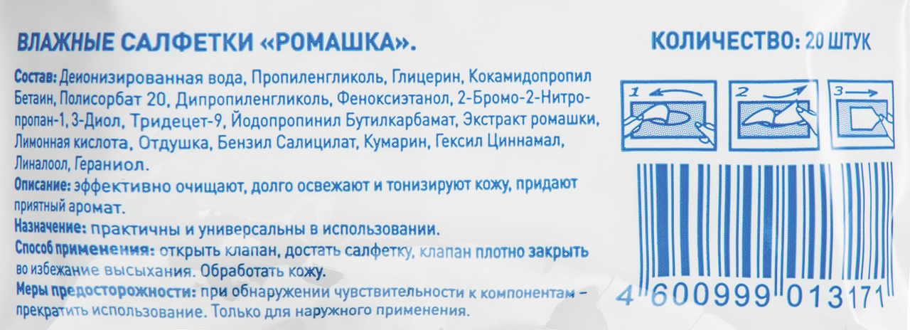 aro Салфетки влажные освежающие с ромашкой, 20шт