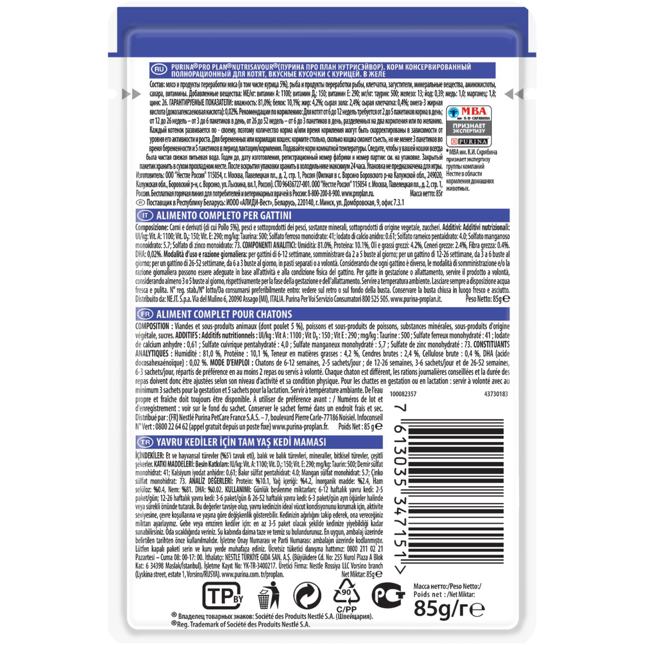 Корм влажный Pro Plan Вкусные кусочки в желе для котят с курицей, 85г