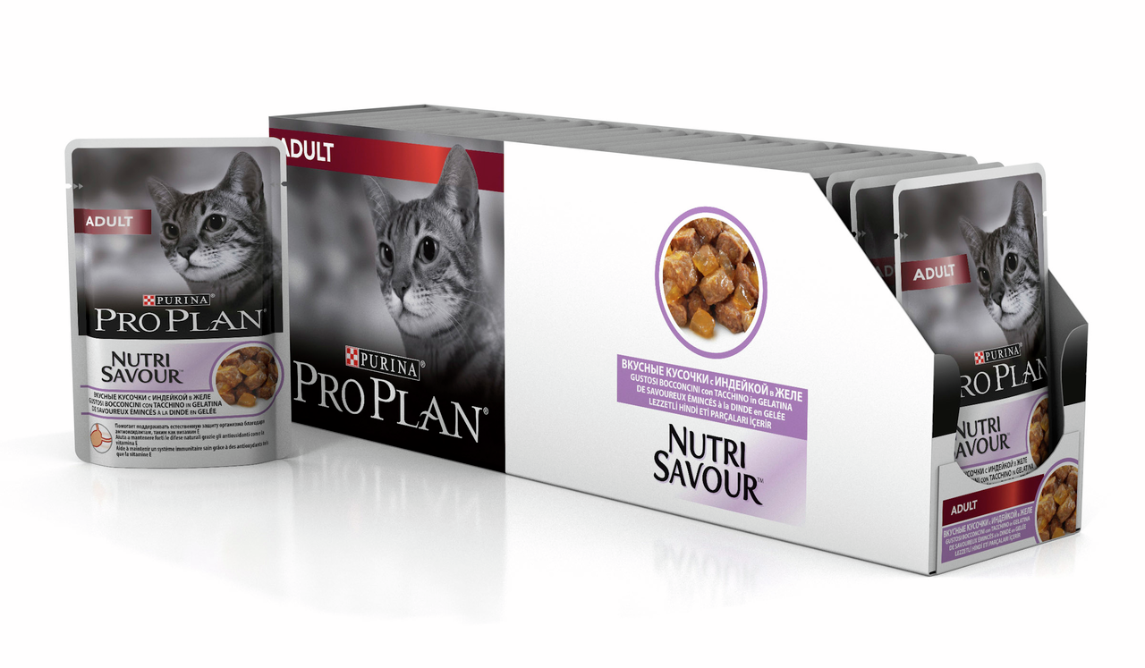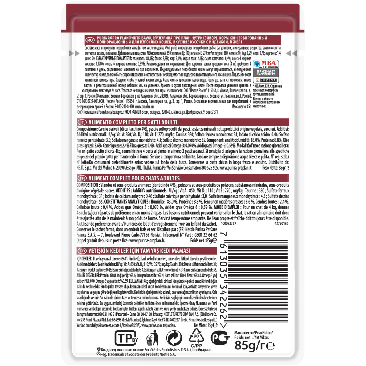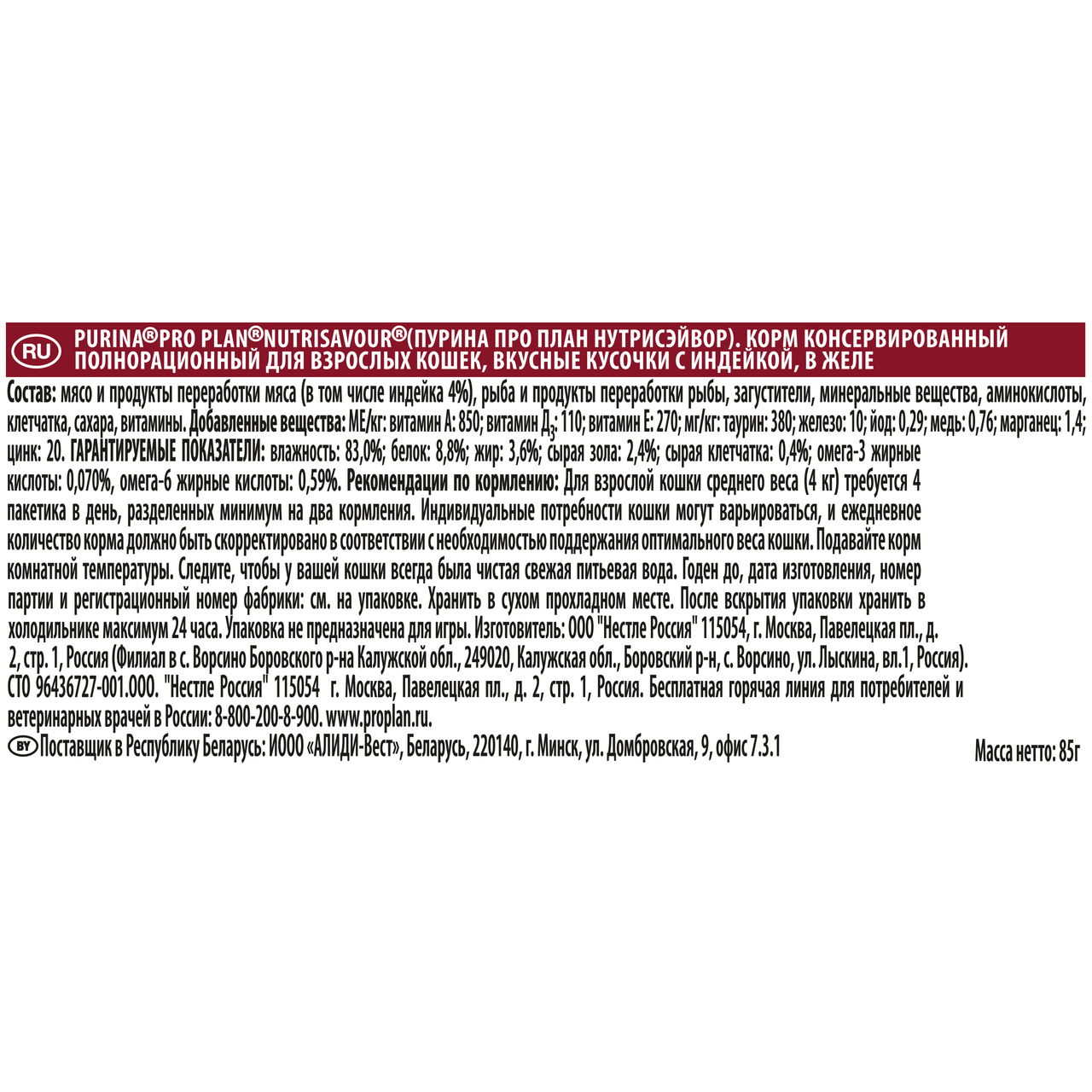 Корм влажный Pro Plan Вкусные кусочки в желе для кошек с индейкой, 85г