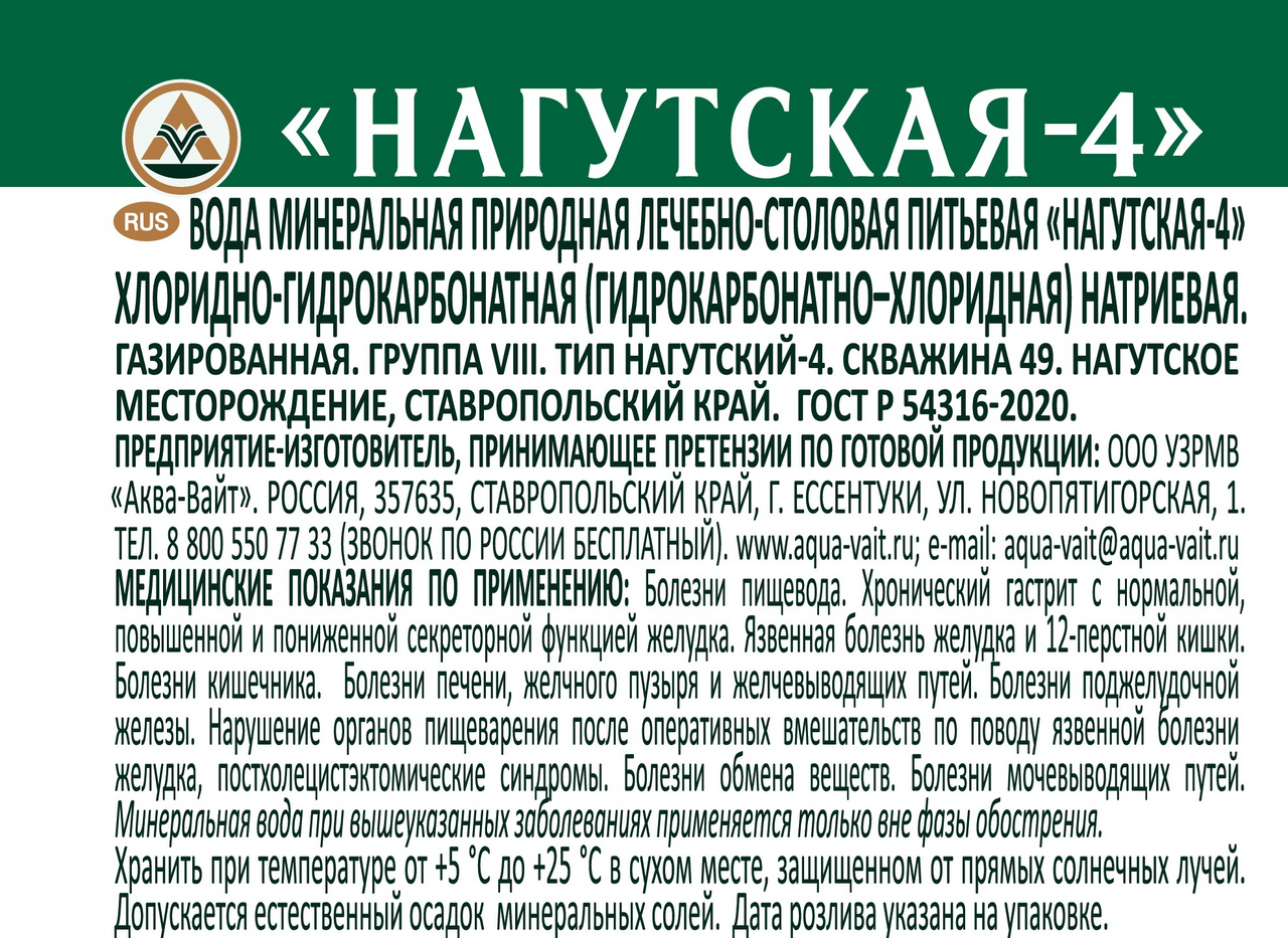 Вода Аллея источников Нагутская №4 минеральная лечебно-столовая газированная, 500мл