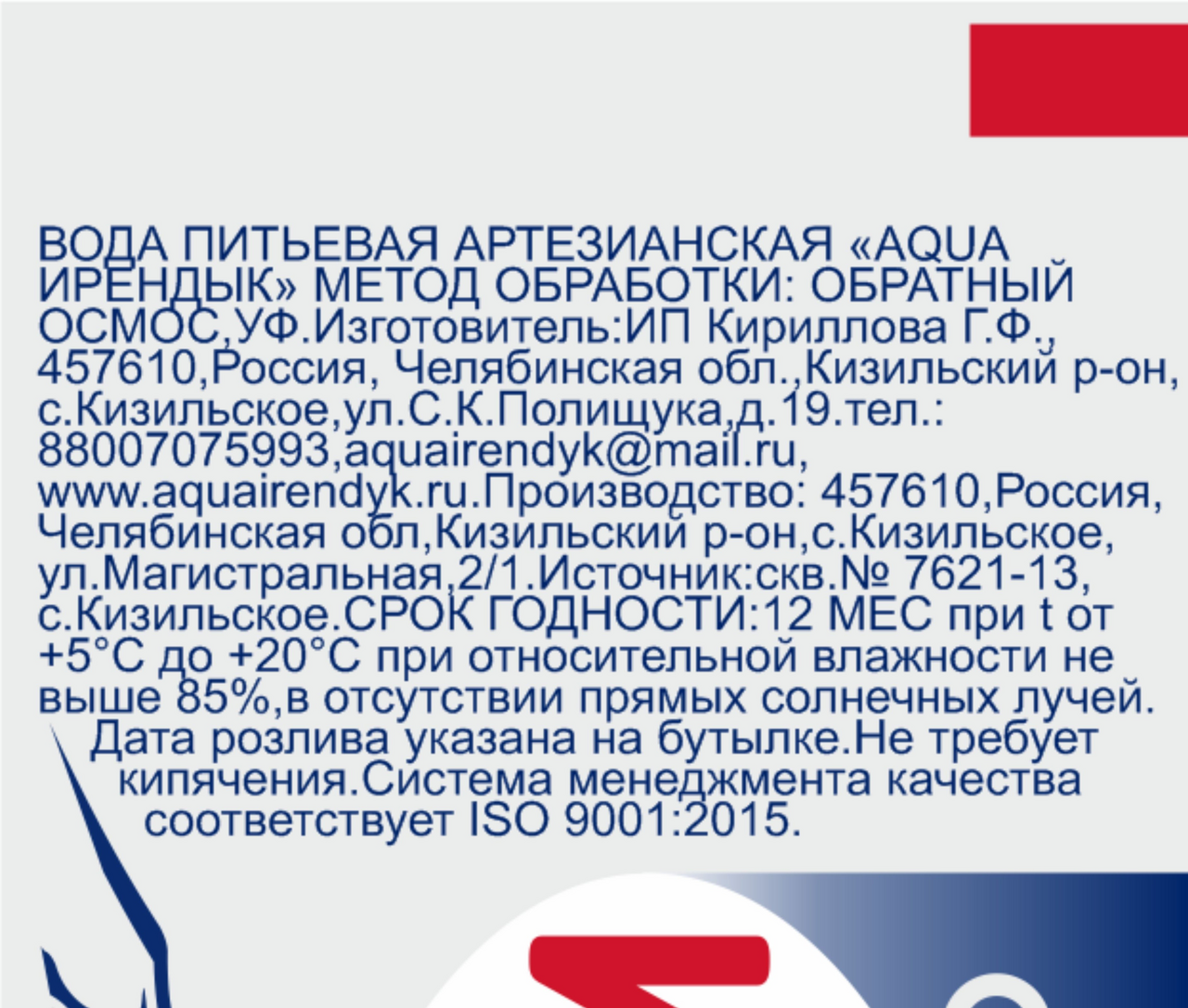 Практичное решение для тех, кто ценит свое здоровье и следит за водным балансом своего организма. Благодаря удобному формату бутылки, вы можете взять с собой свежую и кристально чистую воду aqua Ирендык в любое место: на работу, тренировку, положить ребенку в сумку в школу, прогулку или путешествие, бутылка отлично входит во все стандартные подстаканники и занимает мало места в женской сумочке. Плотность пэт бутыли препятствует смятию и проливу воды, форма бутылки очень удобная и практичная, вы можете комфортно держать бутылку в руке даже во время бега или занятий спортом.
