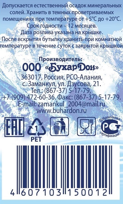 Вернуться назад Вода Бухардон минеральная газированная, 1.5л Оставить отзыв Артикул: 669887 Поделиться В избранное Раскупили Сообщить о поступлении Посмотреть похожие Узнать наличие в магазинах Бренд БУХАРДОН Страна-производитель Россия Подробнее Описание Питьевая лечебно-столовая вода. Так же это хлоридно-сульфатная (Гидрокарбонатно-хлоридно-сульфатная) натриевая вода. Содержит минералы, жизненно необходимые организму человека. Полное описание Характеристики Бренд БУХАРДОН Страна-производитель Россия Раскупили Сообщить о поступлении Посмотреть похожие Узнать наличие в магазинах