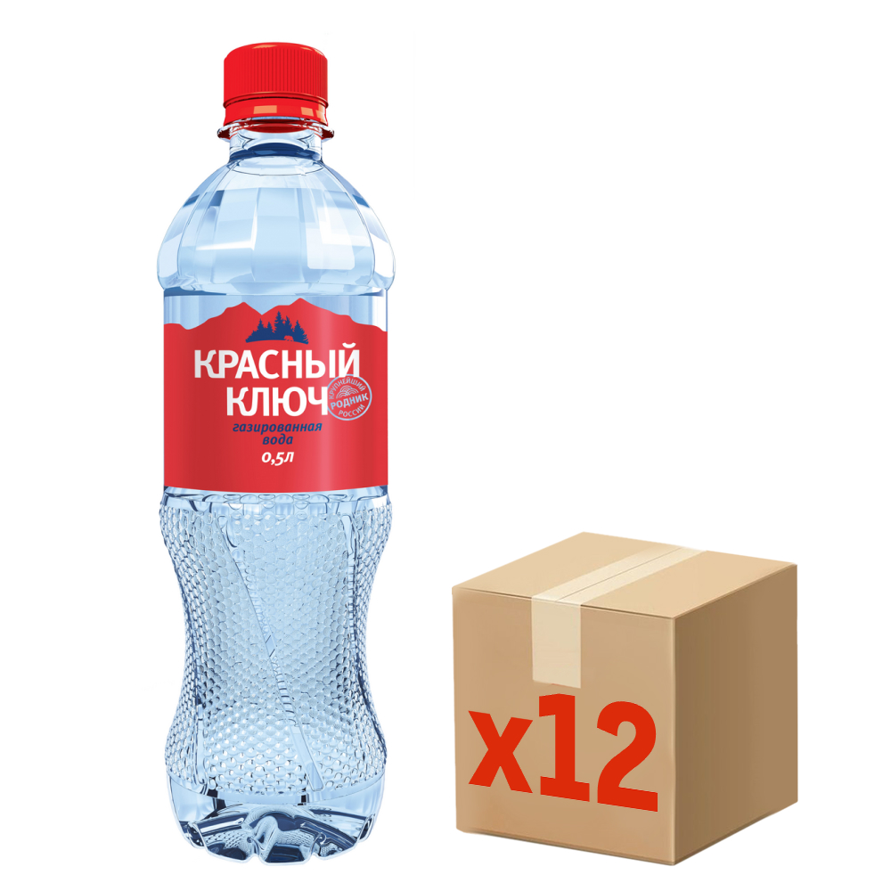 Вода Красный ключ питьевая газированная, 500мл x 12 шт