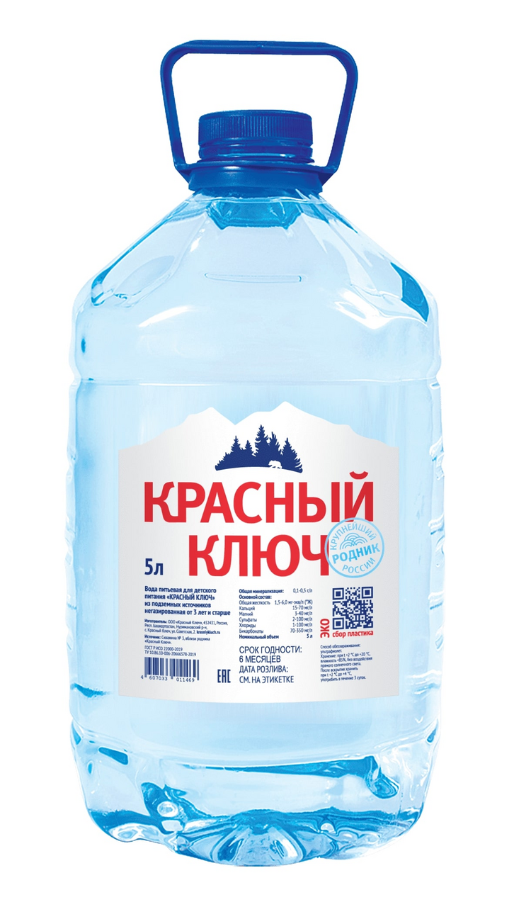 Вода Красный ключ питьевая негазированная от 3х лет и старше, 5л