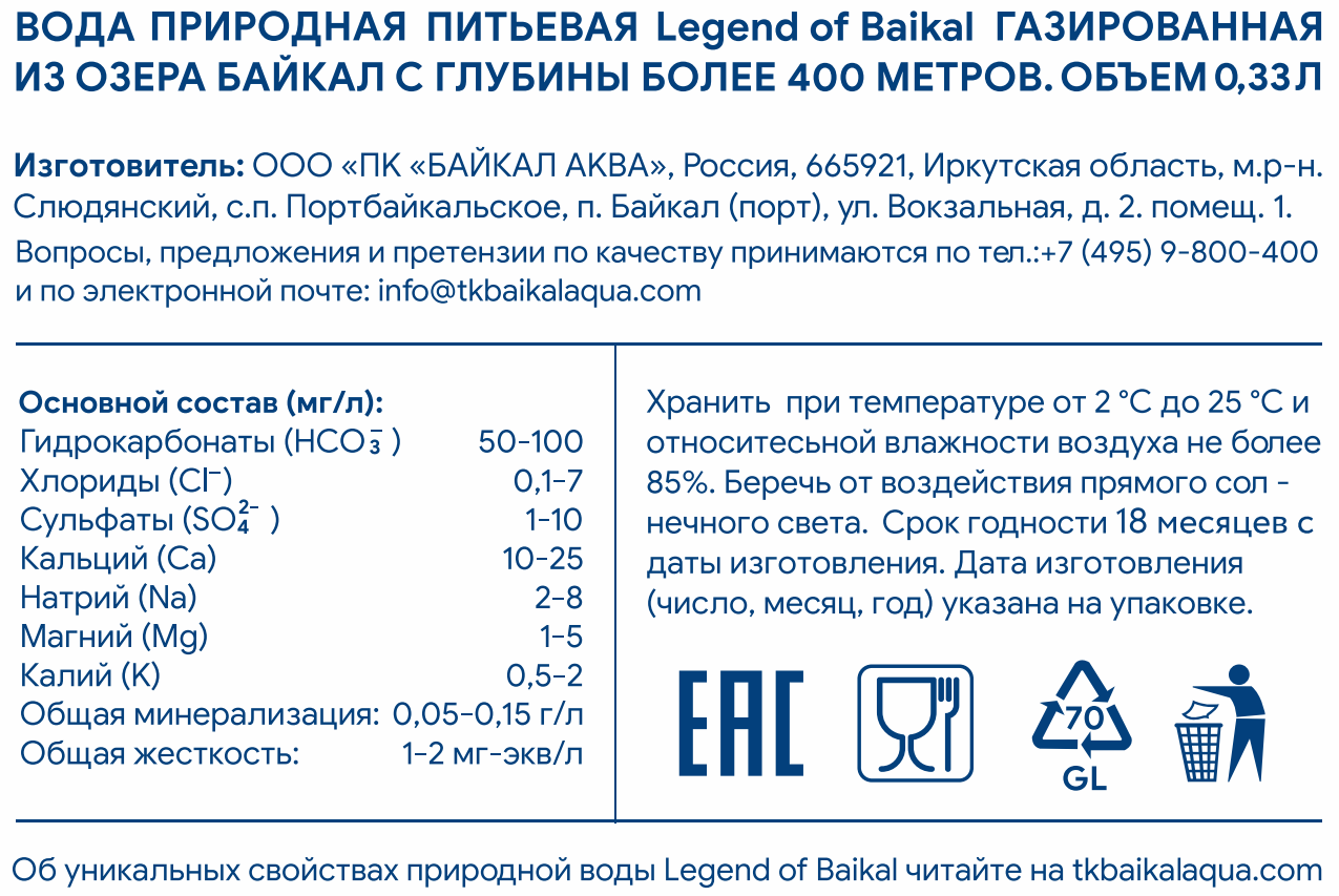 Вода Legend of Baikal газированная, 330мл x 12 шт - вода, не тронутая цивилизацией. Наша миссия - дать возможность потребителям во всем мире попробовать на вкус воду из легендарного озера Байкал, такой какой ее создала сама природа. Водный показатель байкальской воды рН - 7,6 и рН человеческого организма практически совпадают. Такая вода не несет никаких раздражающих факторов и прекрасно усваивается.