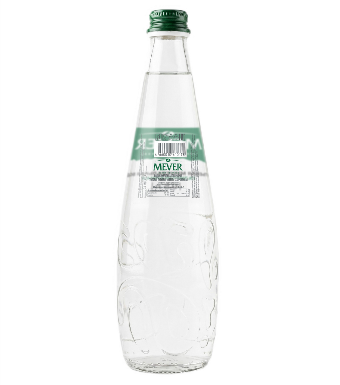 Природная минеральная вода из горного источника Mever. Минеральная природная питьевая вода, впитавшая в себя свежесть горного ветра, тепло и энергию кавказского солнца, чистоту горных потоков. Вода не подвергается дополнительной обработке и попадает в бутылку в первозданном виде. Оптимально-сбалансированный минеральный состав горной воды с газом - идеально подходит для ежедневного потребления.
