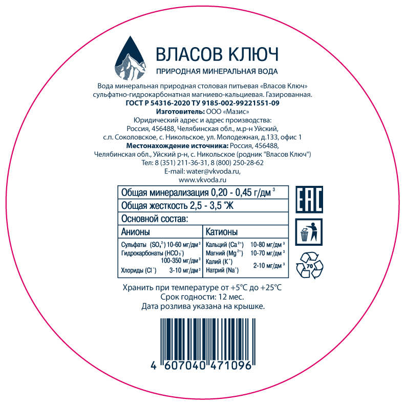Родниковая природная минеральная столовая вода. Обладает уникальным натуральным составом микроэлементов, идеально подходит для ежедневного потребления, восстанавливает и поддерживает минеральный баланс организма, являющийся ключом к здоровью.