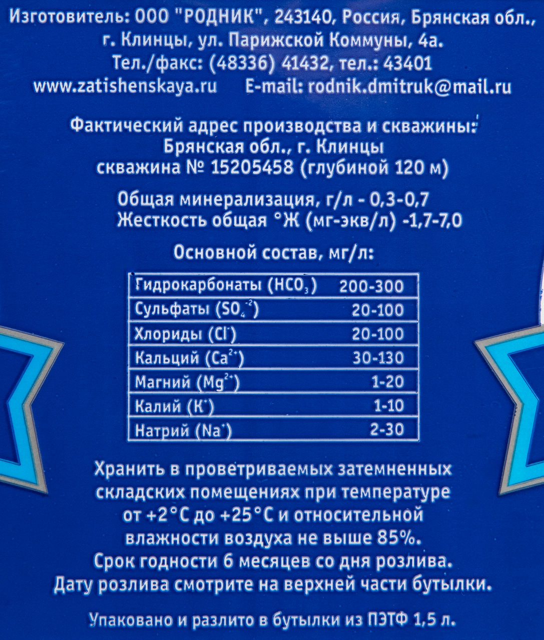 Вода Затишенская негазированная, 1.5л x 6 шт является экологически чистой газированной питьевой лечебно-столовой водой. Добывается из скважины глубиной 475 метров в поселке Затишье Клинцовского района Брянской области. Показана при хронических заболеваниях печени и желчевыводящих путей, а также при панкреатите.