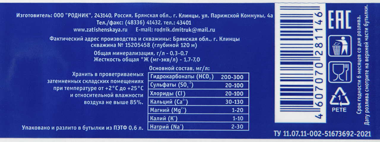 Вода Затишенская негазированная, 600мл x 10 шт добывается в уникальном месторождении в месте Турон - сантонского карбонатного комплекса на глубине 120 метров. Высокое содержание растворенного кислорода придает воде свежесть вкуса, а легкая минерализация и отсутствие металлов дает воде несравненное преимущество перед любой другой водой.