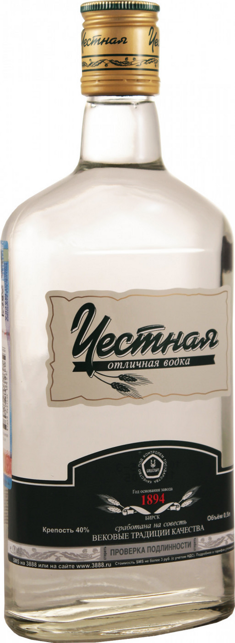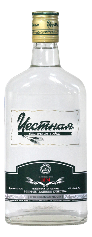 Создана на основе спирта наивысшего качества - Альфа, с добавлением чистейшей воды. Благодаря использованию качественного сырья с применением современного оборудования, на котором работают высококвалифицированные специалисты, водка Честная получила свой мягкий и чистый вкус, а также неоспоримую гастрономичность, что является немаловажным критерием при ее приобретении.