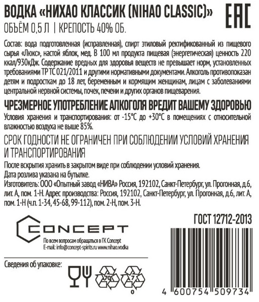 Водка Nihao Classic - премиальная водка из чистейшей природной воды и отборного зернового спирта, созданная экспертами с использованием лучших технологий западного водочного мастерства и уникальных китайских традиций гостеприимства. Классическая водка, изготовленная в лучших китайских традициях. В переводе с китайского переводится как Привет. Водка производится на основе отборного зернового спирта класса Люкс, специально подготовленной воды, спиртованного настоя овсяных хлопьев и спиртованного настоя риса. Во вкусе и аромате водки чувствуются тонкие зерновые нюансы. Перед употреблением водку рекомендуется охладить до температуры 4-6С.