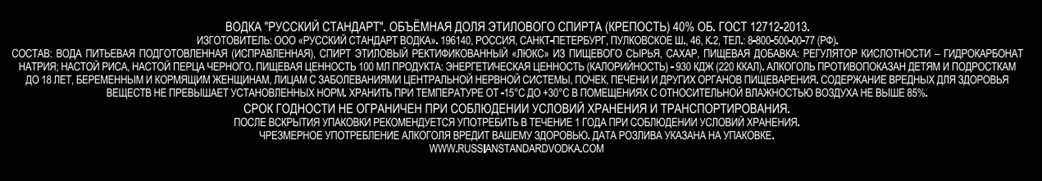 Водка Русский Стандарт + кружка в подарочной упаковке, 0.7л
