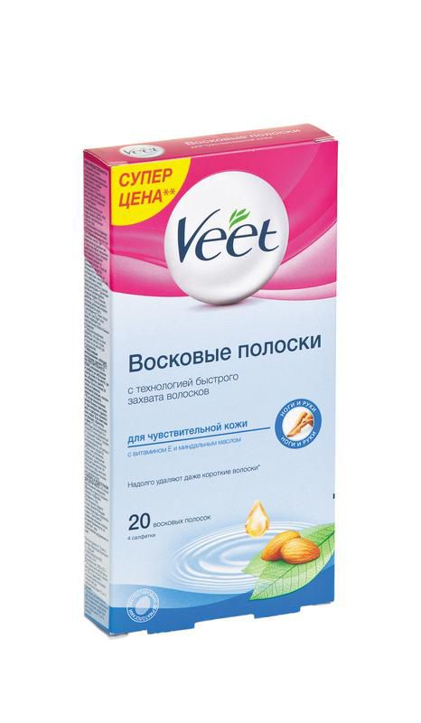 Восковые полоски VEET для чувствительной кожи, 20 шт