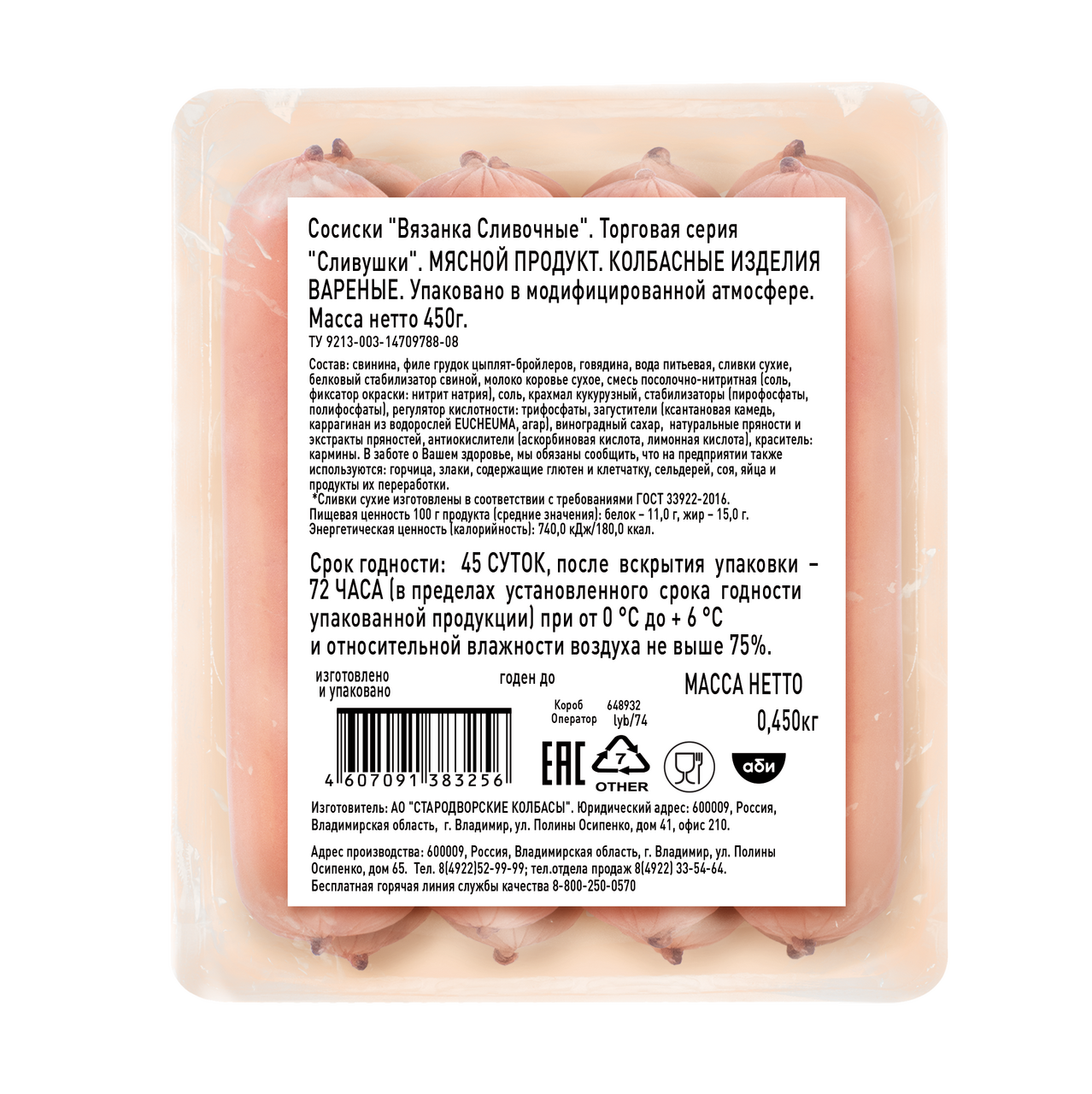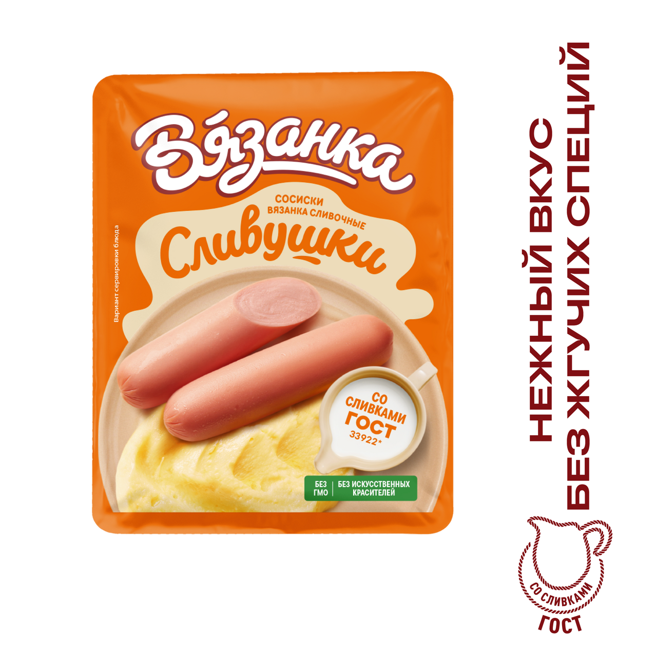 Сосиски без жгучих специй, в них волшебно связаны сливки и натуральное мясо, поэтому Сливушки такие нежные! Особенно понравятся детям! Мамы и их дети обожают сосиски Сливушки от Вязанки! В их составе натуральное качественное мясо, нежнейшие сливки и сбалансированный букет легких пряностей, в котором отсутствуют жгучие специи. Сосиски Сливушки с нежнейшей текстурой и нежным сливочным вкусом отлично подойдут детям, чтобы подкрепиться и полакомиться. Позволяют мамам вкусно, быстро и полезно накормить своих детей.