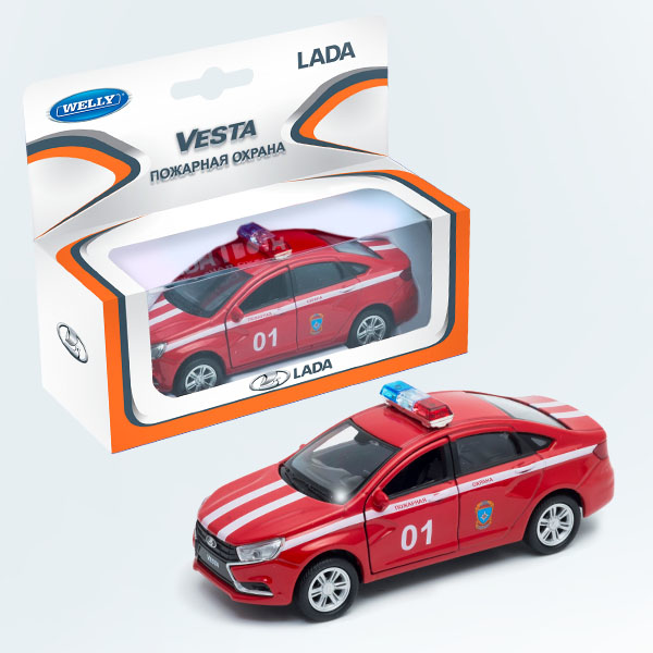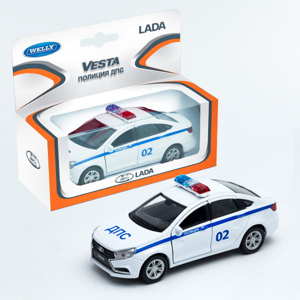 Модели машин LADA Vesta, длина модели 11,5 см. Модели Welly имеют открывающиеся передние двери, инерционный механизм, подробную детализацию, не исключая деталей салона автомобиля. Окраска модели настолько ровная и глянцевая, что сложно отличить от реального автомобиля. Машинки можно брать с собой на прогулку и устраивать настоящие гонки вместе с друзьями. Собери свою коллекцию моделей машин от Welly. Все модели произведены по лицензиям автопроизводителей.