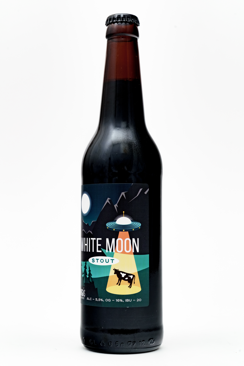 Пиво White Moon стаут стекло, 0,5л представляет собой слабоалкогольный напиток черного цвета со светлой плотной пенкой. Он отличается ярко выраженным, насыщенным вкусом с оттенками кофе, тостов и приятным ароматом с тонами ириски, нотками корочки хлеба, солода и нюансами ванили. Послевкусие длительное с легкой хмелевой кислинкой. В состав входят только натуральные ингредиенты – ячмень и хмель. Без усилителей вкуса, консервантов и других вредных добавок. Пиво подвергают фильтрации и пастеризации, за счет чего оно получается живым и свежим. Напиток рекомендуется употреблять охлажденным и подавать к столу в вытянутом стеклянном бокале. Он идеально сочетается с приготовленным на гриле мясом, копченостями, нарезками из колбас, сыров и шоколадными десертами. Отличной закуской могут стать креветки, луковые кольца, чесночные гренки, бутерброды из пшеничного хлеба и многое другое. Напиток выпускается в бутылке из стекла с интересным дизайном и плотно прилегающей яркой этикеткой.