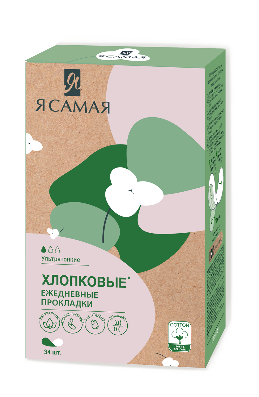 Прокладки ежедневные Я самая ультратонкие хлопковые, 34шт