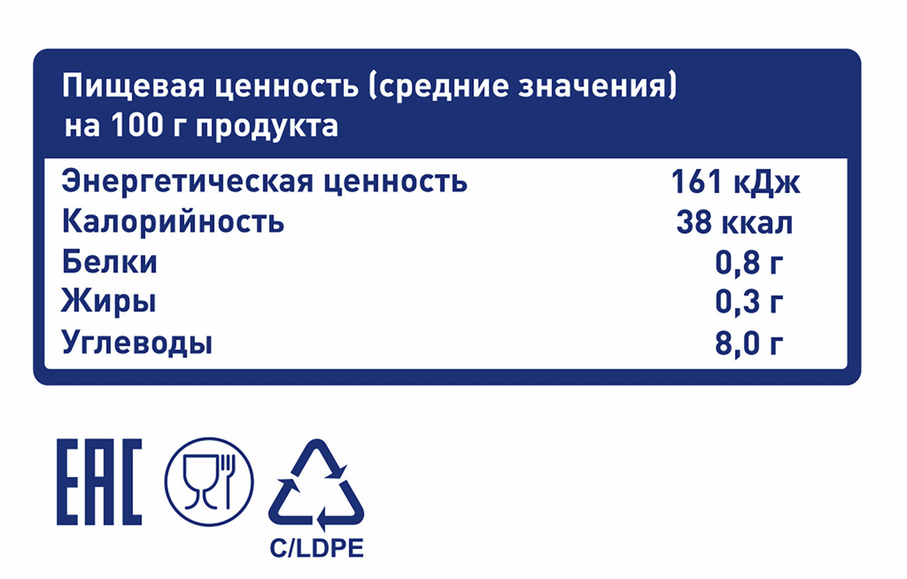 Рекомендации по приготовлению: замороженные ягоды используются для приготовления десертов, компотов, варенья, основы для коктейлей, смузи, начинки для пирогов и других блюд. Перед использованием ягоды рекомендуется промыть.