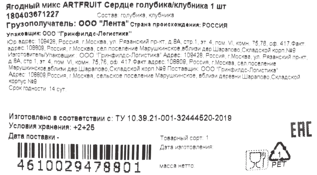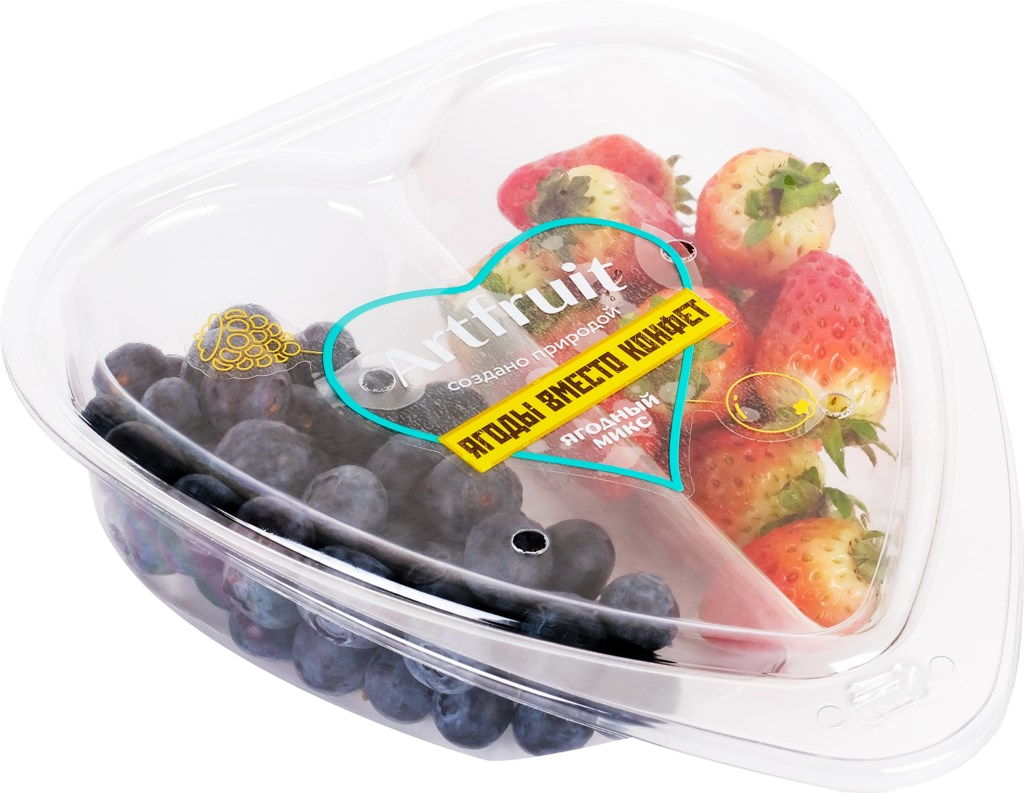 Ягодный микс Сердце, голубика и клубника состоит из отборных спелых плодов с выразительным сладким вкусом. Такой микс можно употреблять отдельно, добавлять во фруктовые салаты, смузи и мороженое, использовать для приготовления и украшения десертов и домашней выпечки.