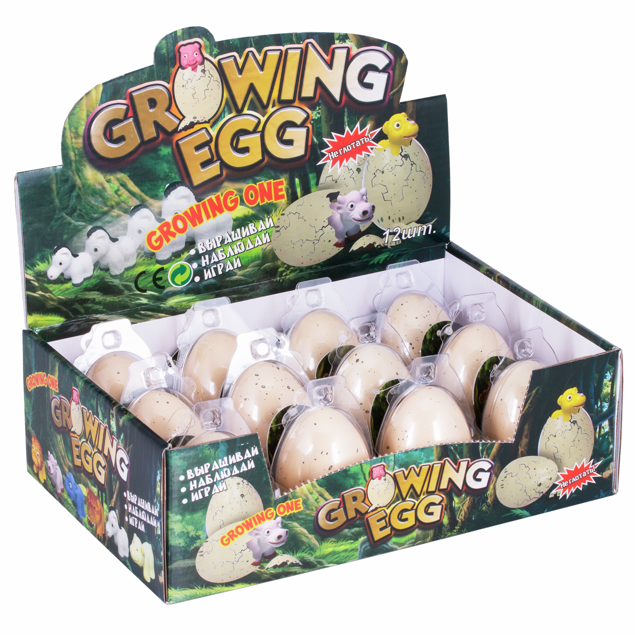 Ваш ребёнок мечтает завести питомца? Игрушки серии Growing One делают возможным вырастить одного из множества существ: от цыплёнка до настоящего динозавра! И это так просто! Положите яйцо в воду и наблюдайте. Через 1-2 дня скорлупа треснет и питомец начнёт вылупляться. Освободите его от скорлупы и оставьте в воде ещё на день, он продолжит расти. А теперь с ним можно играть! И даже если он уменьшится в размерах - не беда, положите его в воду и он снова вырастит!