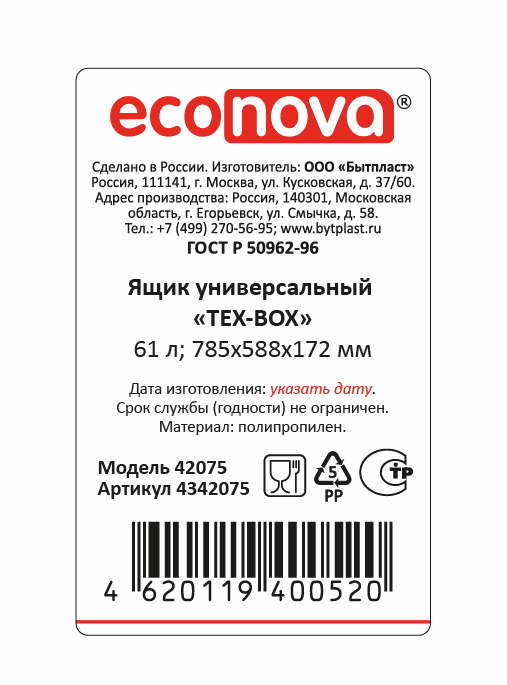 Ящик Econova Tex-Box 78.5 x 58.8 x 17.2см, 61л