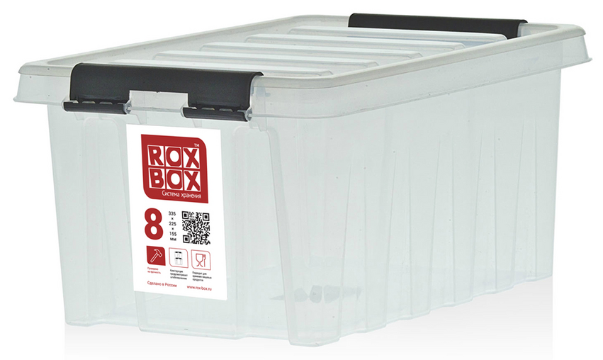 Ящик с крышкой Roxbox прозрачный 8 л, 34 х 22 х 14 см производится из крепкого пластика. Подойдет для хранения различных вещей. Ящик будет удобен и на даче для хранения инвентаря, пакетов, крышек для банок, ниток и веревок. Можно использовать и для хранения продуктов, специй, сахара и соли. Компактные габариты позволяют спрятать ящик в шкафу от посторонних глаз. Удобная крышка с фиксаторами исключает попадание влаги внутрь и выпадения содержимого. Ящик с крышкой помогает организовать пространство, навести порядок, спрятав от посторонних глаз и скопления пыли множество предметов. При этом также выполняет декоративную функцию: его с легкостью можно хранить на открытых полках стеллажей и шкафов.