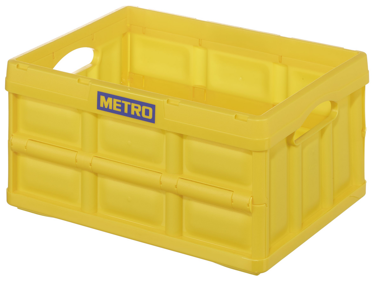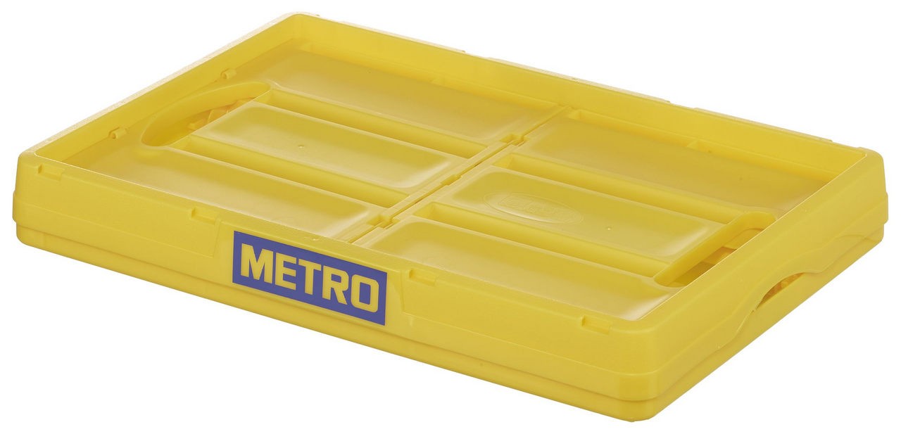 METRO PROFESSIONAL Ящик для хранения складной желтый 46л, 53 x 36 x 29.5 см можно использовать как в домашних условиях, так и на различных предприятиях. Он применяется для хранения различных предметов. Объем изделия позволяет загрузить в него множество мелких вещей или одну-две крупных. Ящик поможет правильно организовать пространство и обеспечит порядок. Его можно ставить на пол, в шкафы или на стеллажи, на открытые или закрытые полки. Для быстрого поиска нужного предмета на пластик снаружи можно наклеивать стикеры с соответствующими надписями. Изготовлено изделие из прочного пластика, который не подвержен негативному влиянию внешних факторов. У него имеется крышка, которая плотно прилегает к корпусу и обеспечивает герметичность. Благодаря этому предметы, помещенные внутрь, защищены от пыли и грязи. Для удобства переноски предусмотрены две ручки. Дополнительным преимуществом является складная конструкция ящика. При необходимости он компактно складывается и легко раскладывается. Изделие рассчитано на долгосрочное использование и удобно в эксплуатации.