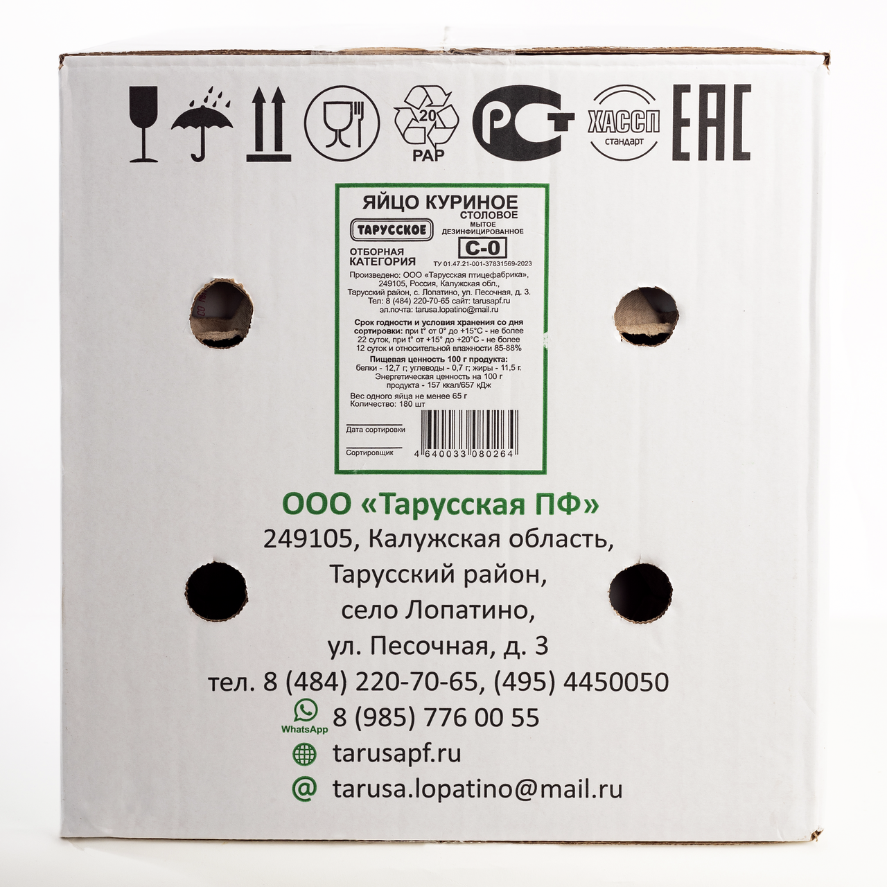 Яйцо куриное Тарусское мытое дезинфицированное С0, 180шт