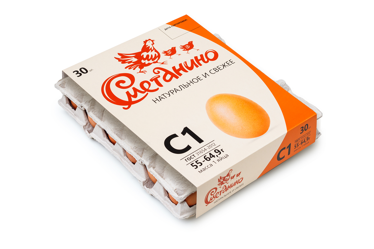 Яйцо куриное Сметанино столовое С1 яркий желток, 30шт