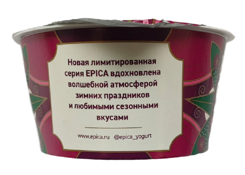 Новая лимитированная серия Epica вдохновлена волшебной атмосферой зимних праздников. Йогурт с наполнителем зимний пунш - сочетание вишни, апельсина и пряных специй, которое согревает и дарит праздничное настроение.