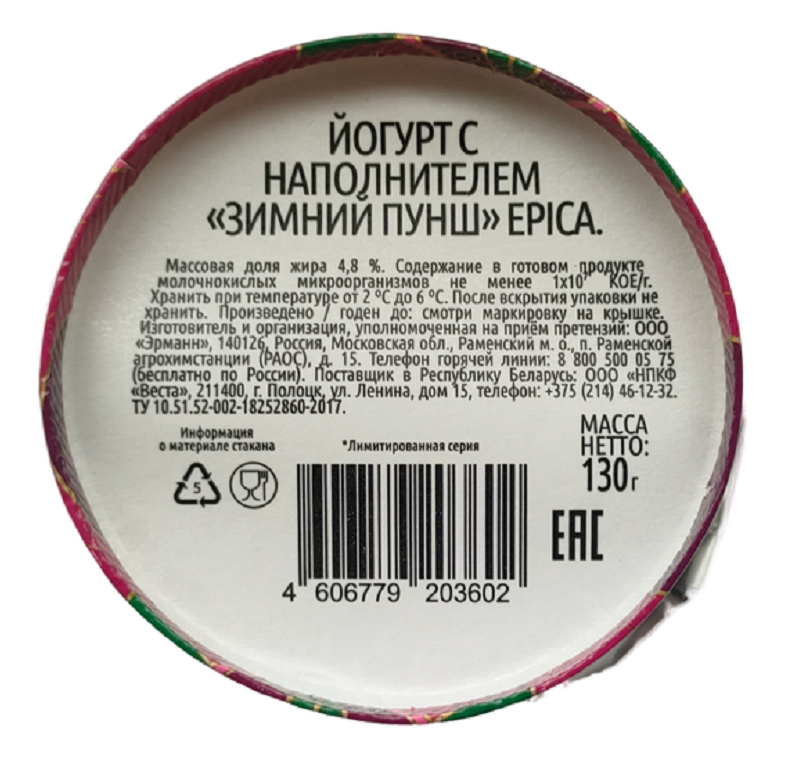 Йогурт Epica Зимний пунш 4.8%, 130г