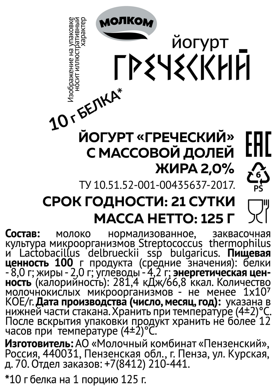 Йогурт Молком греческий 2%, 125г