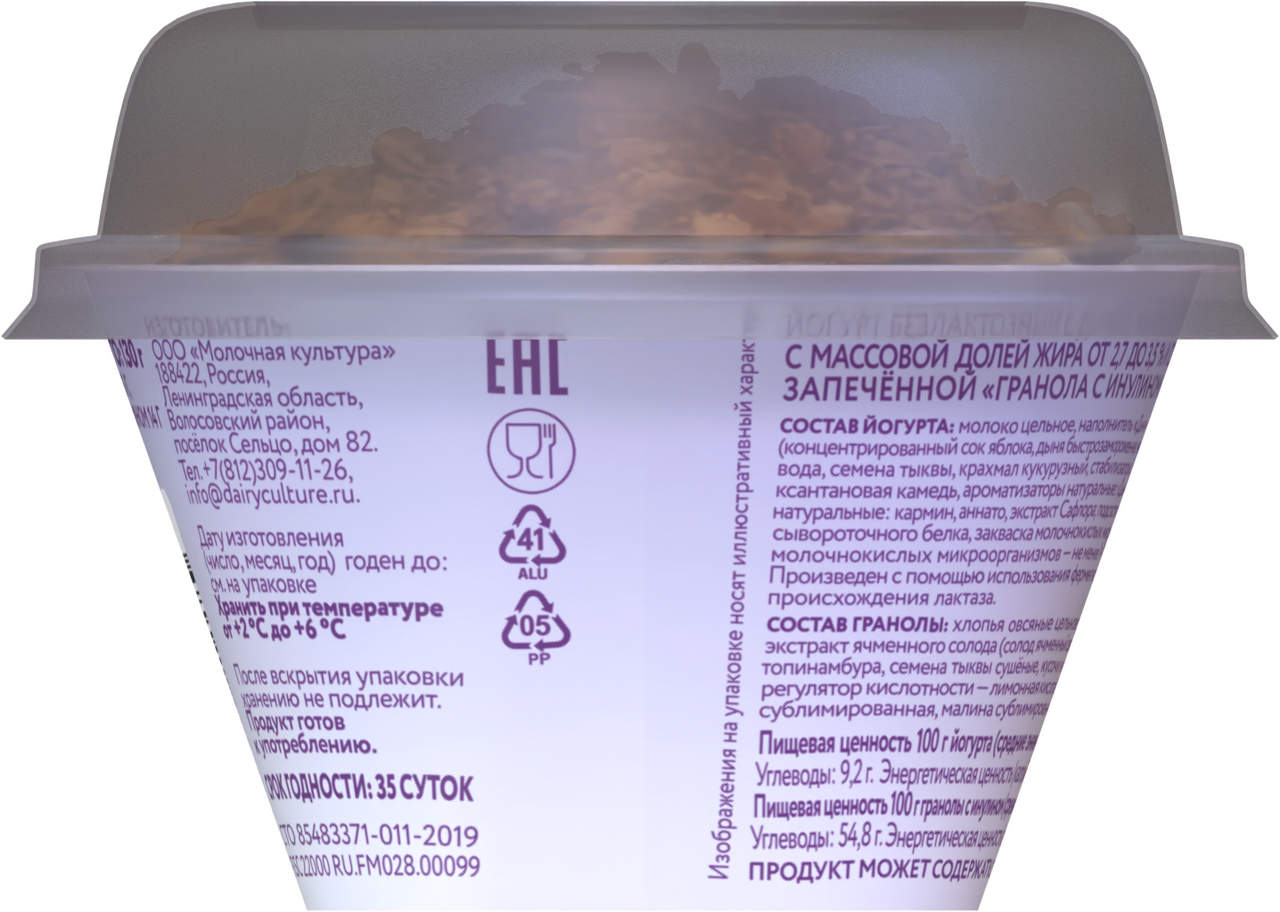 Новый йогурт Молочная культура без лактозы и добавленного сахара с ароматной дыней, сочной малиной и семенами тыквы - яркий вкус лета и энергия круглый год. Мы приготовили сливочный йогурт из цельного молока, убрали лактозу для комфортного усвоения, заменили сахар вкусными фруктами и ягодами и дополнили всё это хрустящей гранолой с пребиотиком инулином. Изюминка нашей новинки - супер-фуд семена тыквы - источник Омега-6, магния, цинка и клетчатки. Заряжайтесь энергией без лишних калорий. 0% лактозы, 0% сахара, 100% наслаждения и максимальной любви к вашему здоровью.