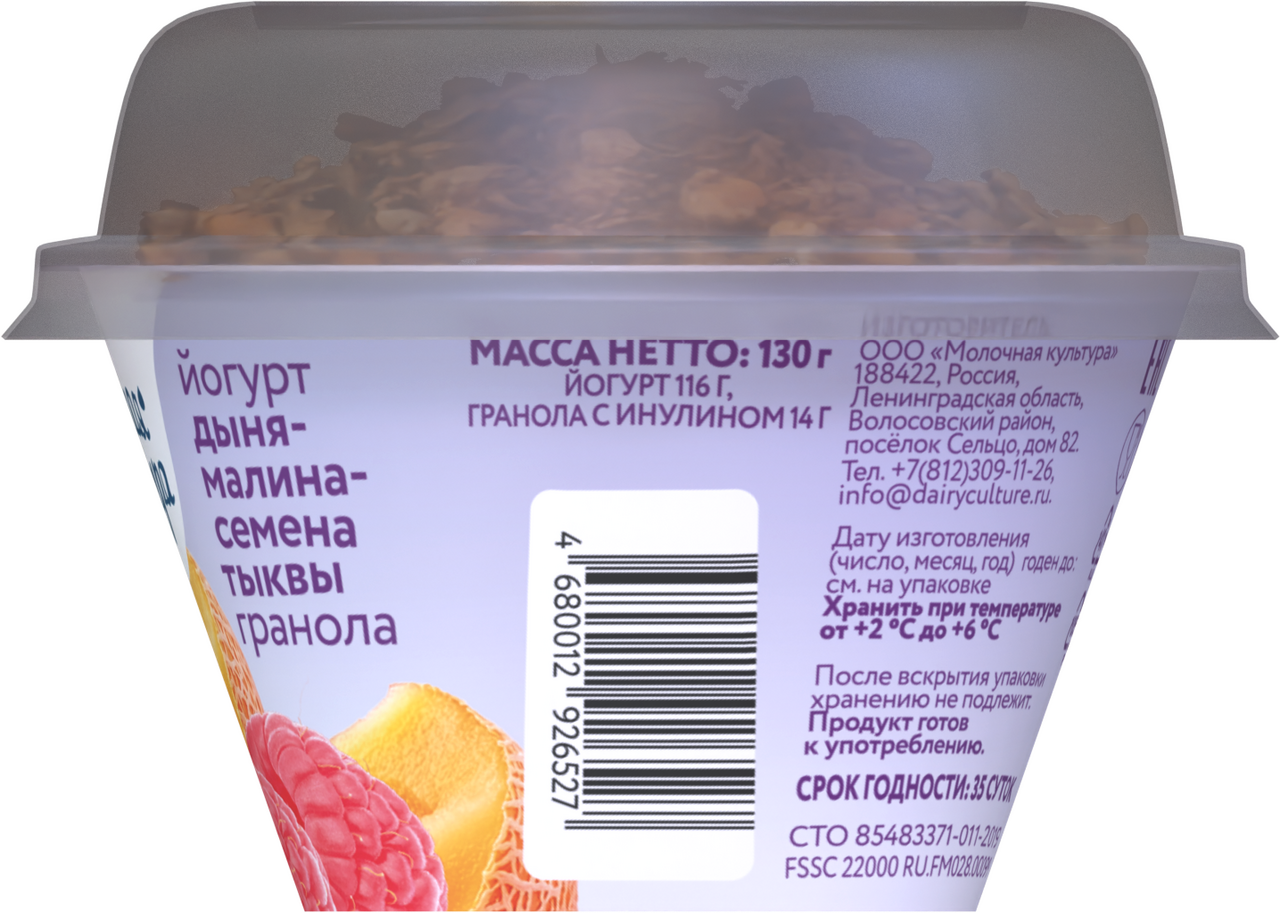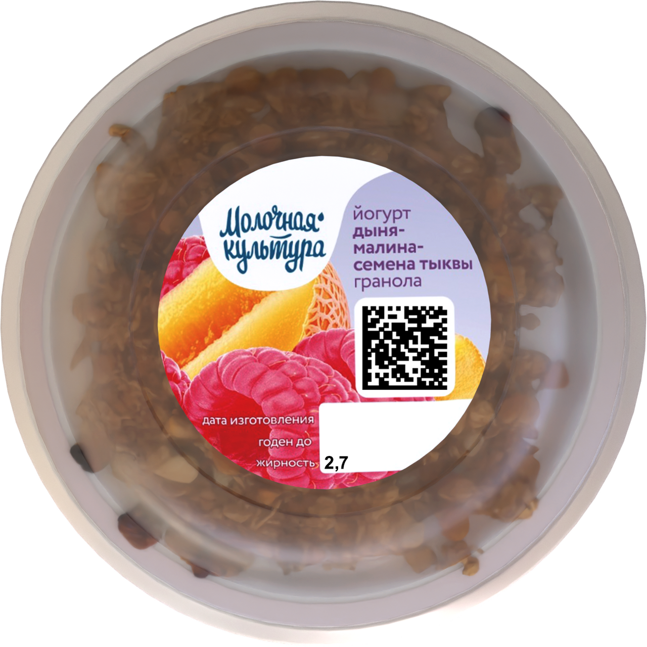Йогурт Молочная культура безлактозный дыня с малиной и гранолой 2.7-3.5%, 130г
