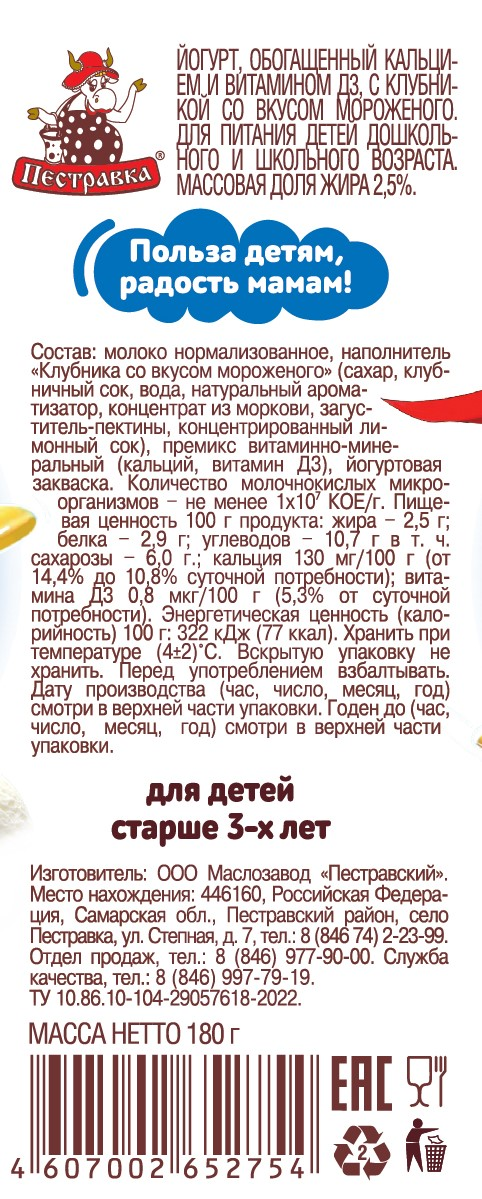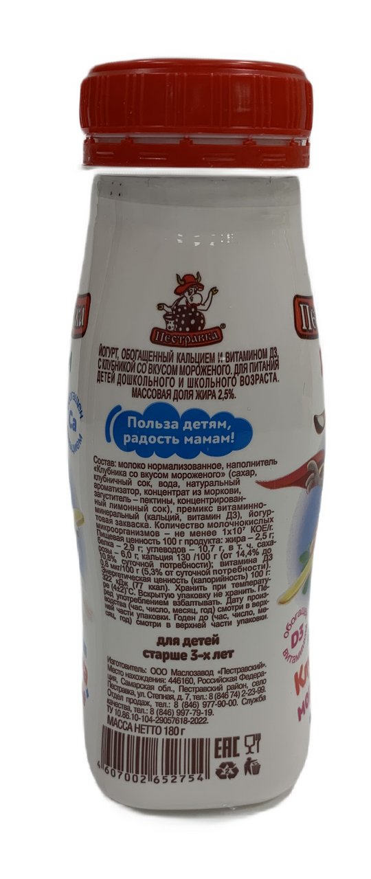 Йогурт Пестравка детям клубника-мороженое, 180г