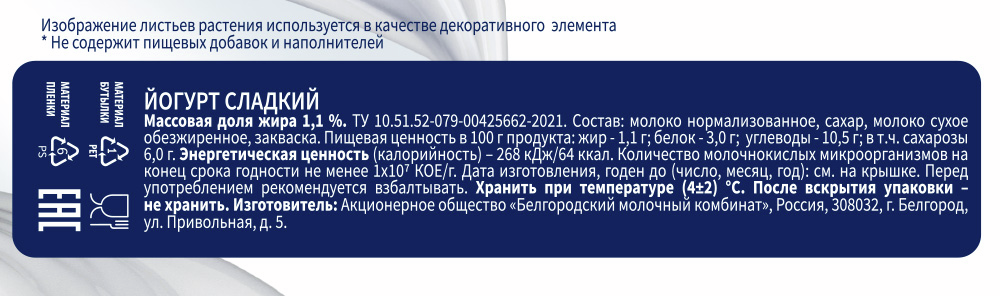 Нежный кисломолочный продукт. Йогурт содержит комплекс витаминов, а также полезные бифидобактерии, которые нормализуют работужелудочно-кишечного тракта. В меру сладкий со сливочным послевкусием прекрасно подходит как для завтрака, так и для легкого перекуса в течение дня. Его добавляют в творог, коктейли, заправляют им салаты.
