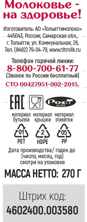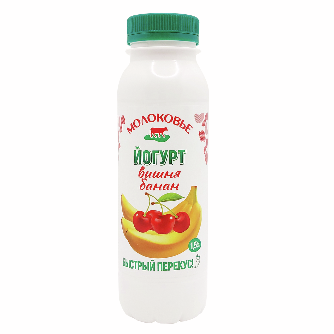 Йогурт питьевой Молоковье вишня-банан 1.5%, 270г