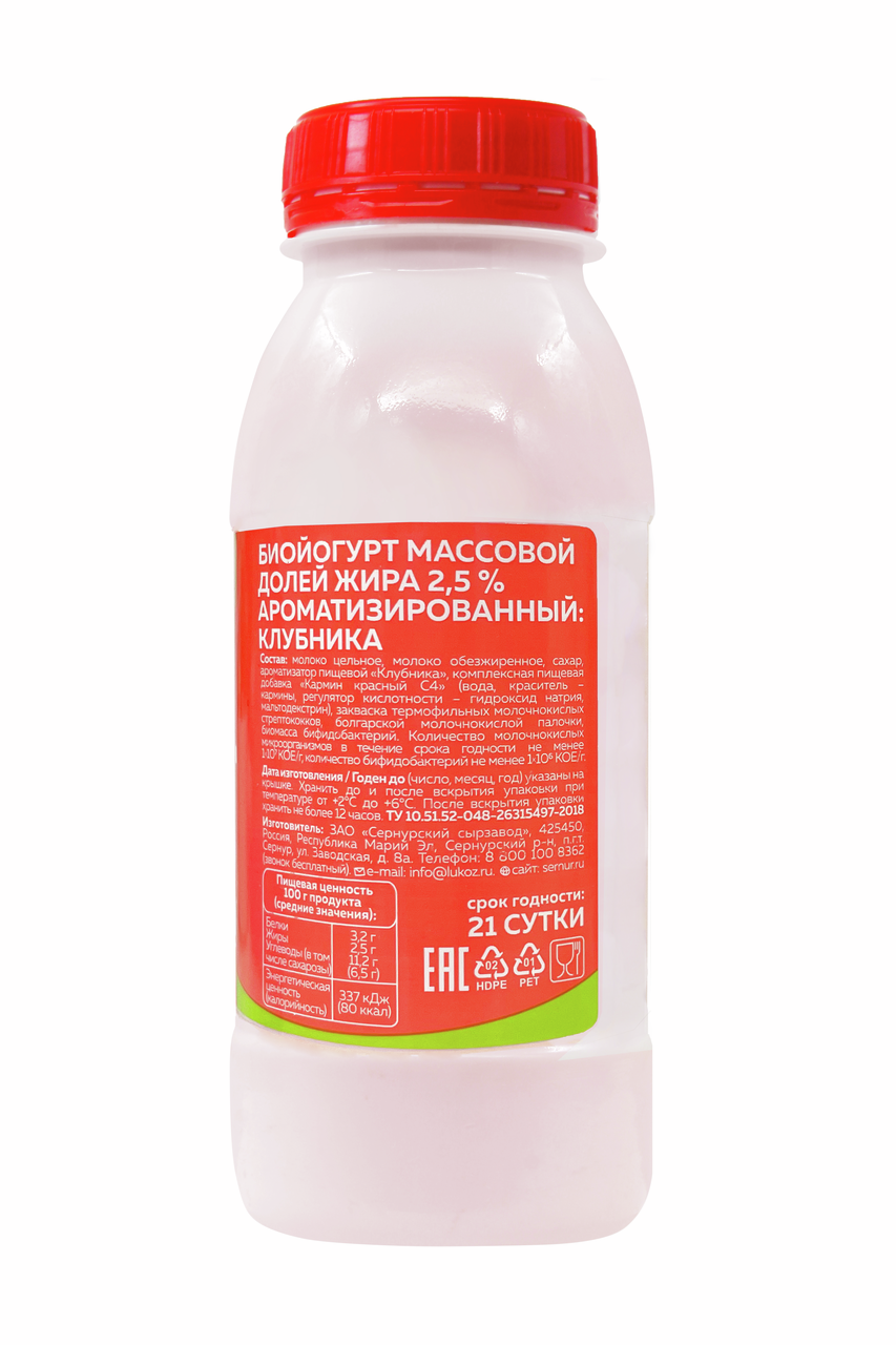 Является кисломолочным продуктом с высоким содержанием живых бактерий, который помогает поддерживать биобаланс в организме. Он насыщает его кальцием и витаминами, укрепляет сосуды и улучшает состояние кожи и волос. Обладает вкусом сочной клубники. Дополнительно обогащен миллиардами пробиотиков, которые оказывают благотворное влияние на процесс пищеварения. Обладает нежной текстурой с кусочками ягод, отличается приятным вкусом с нотками ароматной клубники.