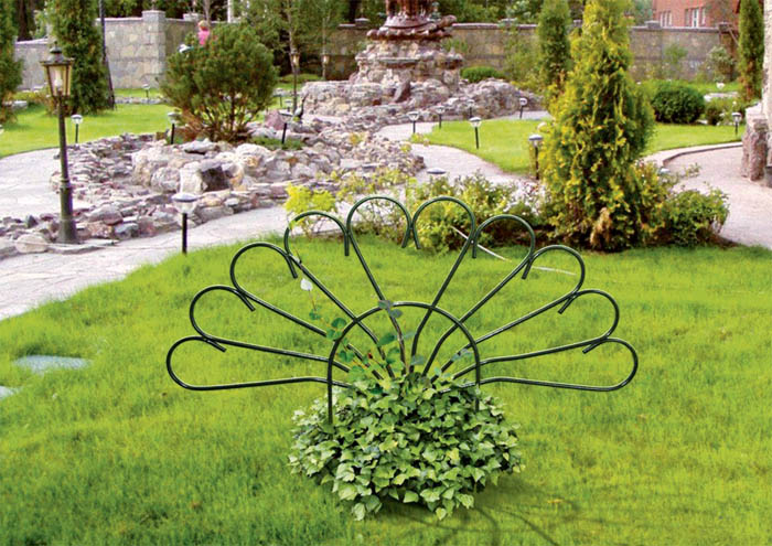 Забор декоративный Павлин КЛЕВЕР-С – это прочное, долговечное сооружение, которое определяет границы на садовом участке. Фигурные ограждения довольно часто применяются для оформления цветочных клумб, садовых дорожек, зон отдыха и т.д. Декоративный забор в виде павлина гармонично смотрится на любой территории. Сооружение изготовлено из прочного металла, которое устойчиво к воздействию атмосферных осадков и солнечных лучей. Благодаря уникальной технологии производства, забор способен прослужить довольно долго. К преимуществам такого ограждения можно отнести: доступную стоимость, стильный дизайн, устойчивость к коррозии, высокое качество материалов изготовления. Материал: металлическая труба.