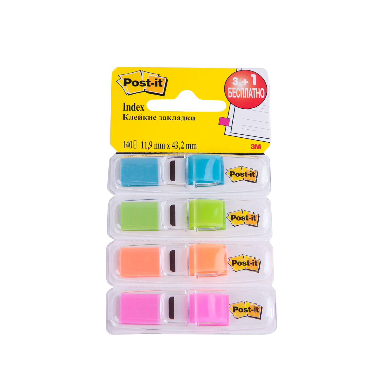 Набор узких закладок Post-it в индивидуальных контейнерах: 4 классических цвета по 35 штук каждого. Долговечные, так как изготовлены из прочного полиэстера. Уникальный клеевой состав позволяет многократно переклеивать закладку, не повреждая и не пачкая страниц. Клейкая часть после наклеивания становится прозрачной и не закрывает текст. На закладках можно делать надписи. Могут использоваться для перезаправки диспенсеров Post-it. Размер 12 х 45 мм.