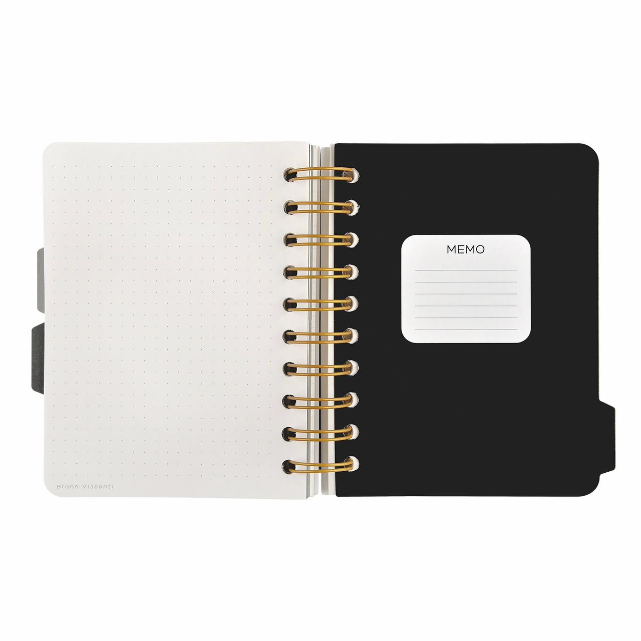 Art Journal – это стильная, удобная, функциональная записная книжка компактного формата А6 от Bruno Visconti. Яркая дизайнерская обложка с закругленными уголками изготовлена из плотного ламинированного картона. 120 листов внутреннего блока произведены из бумаги плотностью 80 г/кв.м и надежно скреплены гребнем, который позволяет переворачивать их на 360 градусов. Что примечательно - листы имеют разную линовку: клетка, линейка, точка. Под каждую задачу – свои листы. Очень удобно и классно! Но все же главная изюминка записной книжки – цветные картонные разделители, благодаря им легко и быстро можно найти нужный раздел. Компактная записная книжка Art Journal подойдет для фиксации важных планов, ежедневных заметок или спонтанных мыслей под настроение.